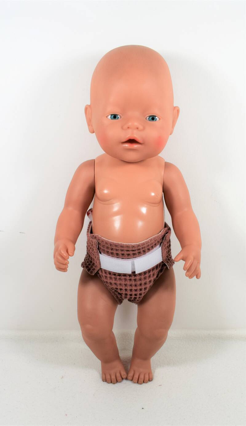 Maar goed, terug naar de luier. Een poppenluier is ideaal om restjes stof op te maken. Bovendien maak je er een poppenkind heel erg blij mee. Want zeg nou zelf: wat is een babypop zonder luier?
