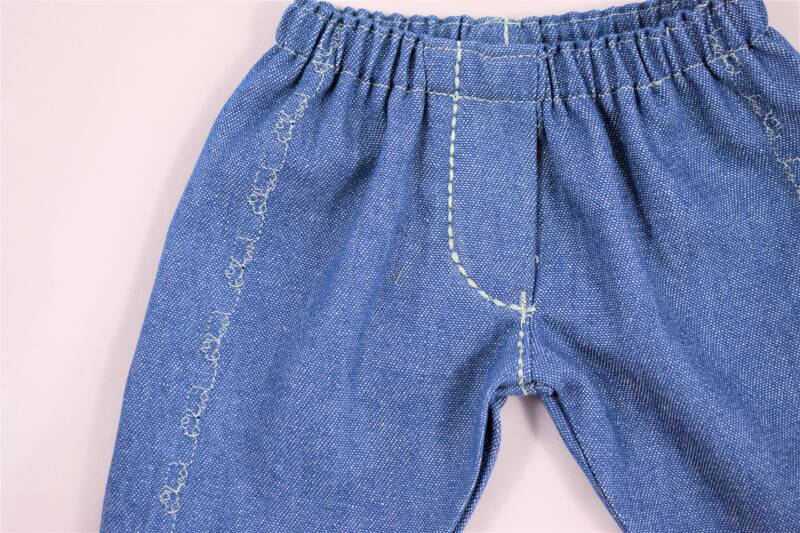 Datzelfde spijkerbroekje heeft een "nepgulp". Ook leuk om door te stikken met een sierstiksel. Hier gebruikte ik ook gewoon garen, maar doordat de machine bij deze steek drie keer over elkaar stikt krijg je de illusie dat er dikker garen is gebruikt. Ik vind hem top!