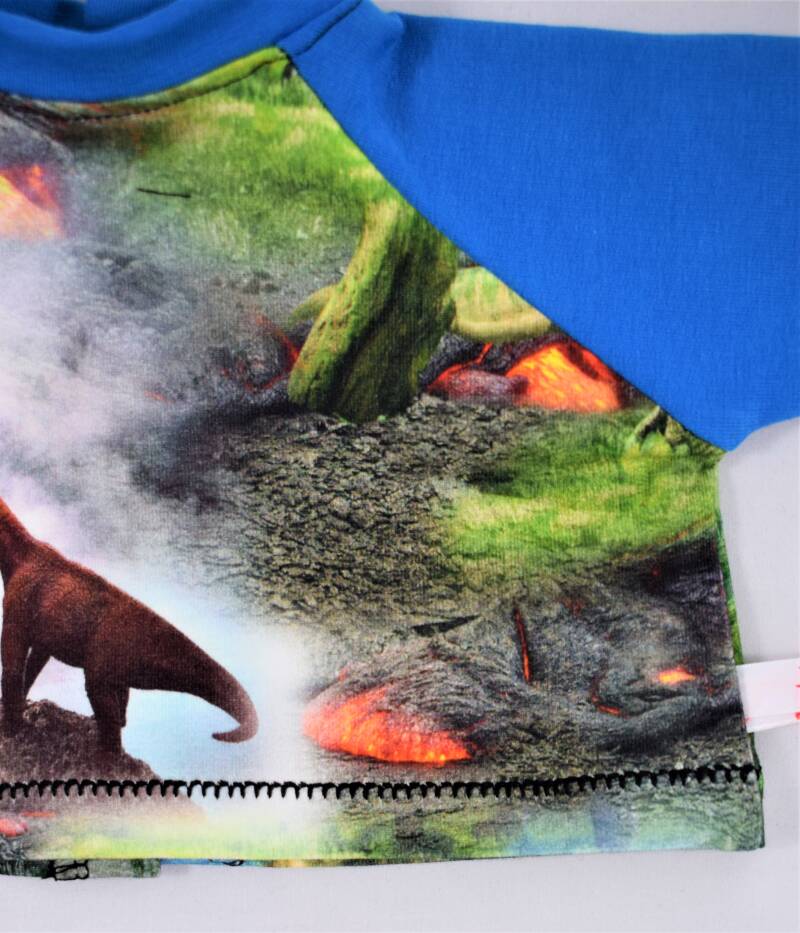 Een verhaal apart zijn de zomen in de shirts. De shirts zijn gemaakt van tricot, wat rekbaar is. Daarom kun je niet elke steek gebruiken bij het naaien. De zoom moet kunnen rekken zonder dat de draad breekt en de zoom los zou gaan. Bij de linkerfoto heb ik een bepaalde steek gebruikt, die in het programma van de "nuttige steken" staat. Deze steek wordt ook vaak gebruikt bij ondergoed en dergelijke en kan ook heel goed als decoratieve steek gebruikt worden. Mooi zoompje toch?