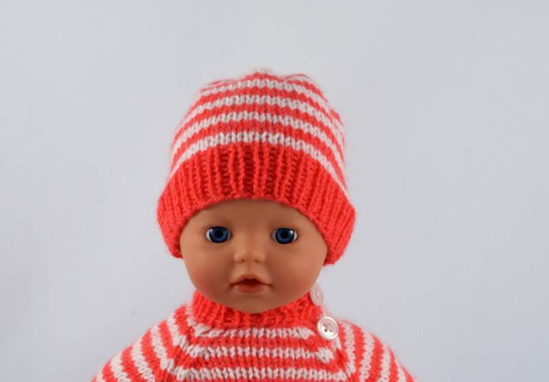 Dit patroon is speciaal ontworpen voor een babypop van 32 cm. (bijvoorbeeld My Little Baby Born). De hoofdomvang van het popje is ongeveer 24 cm.