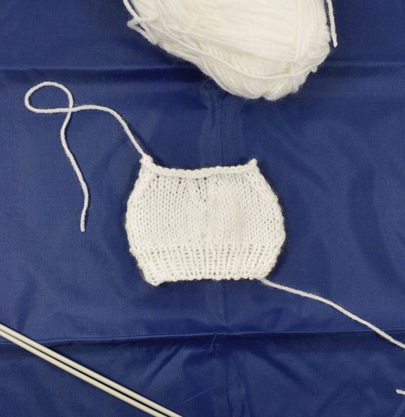 Ga verder met naalden nr. 3 ½ in tricotsteek en meerder in de eerste naald verdeeld 4 steken. Er staan nu 30 steken op de naald. Brei tot een totale hoogte van 5 cm. (voor de Gordi eventueel tot 4 cm.)