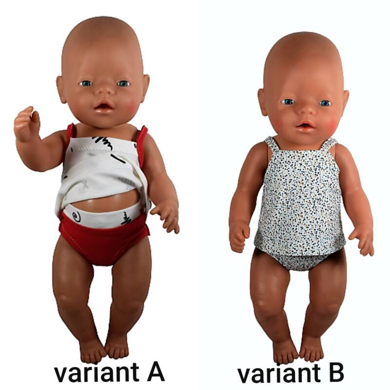 Voor pop van 40-45 cm. : BBN2620 Patroon ondergoed setje in twee varianten