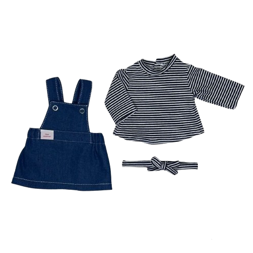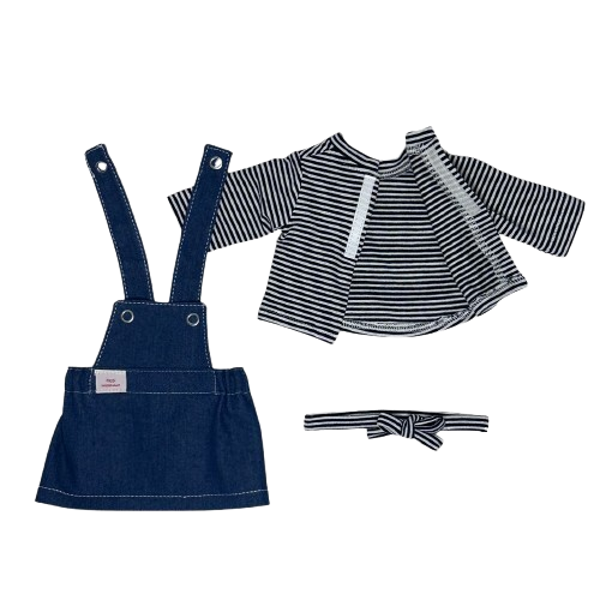 Met dit naaipakket maak je zelf een stoer tuinrokje en top voor een pop van 40-45 cm.