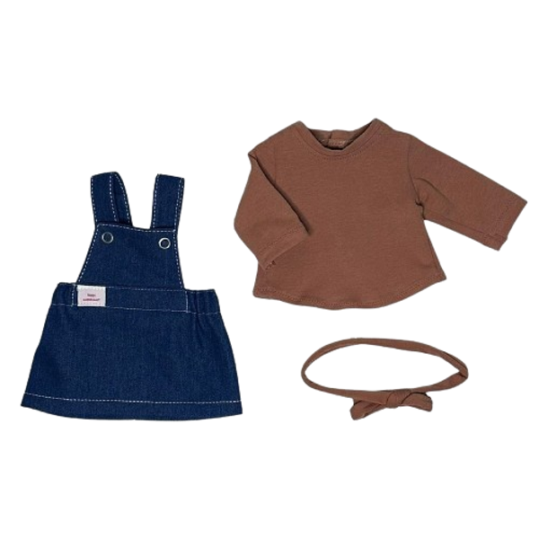 Met dit naaipakket maak je zelf een stoer tuinrokje en top voor een pop van 40-45 cm.