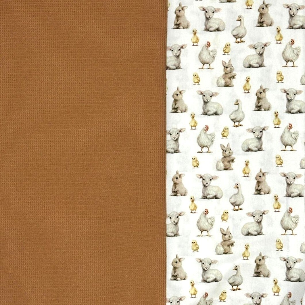 Materiaal sjaalkraag: katoen, boerderijdiertjes op een offwhite ondergrond