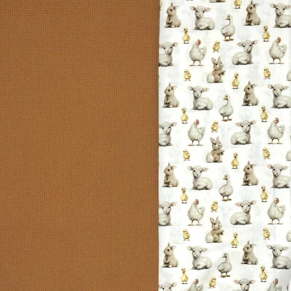 - Katoen, boerderijdiertjes op een offwhite ondergrond