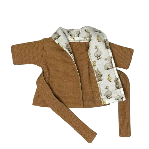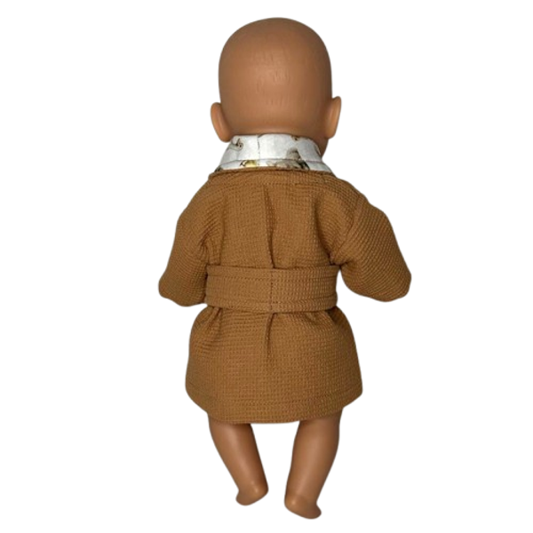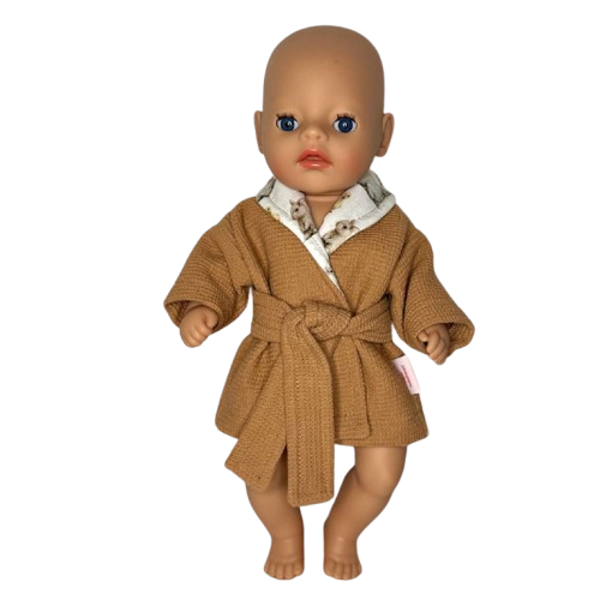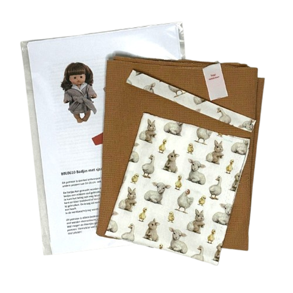 Met dit naaipakket maak je zelf een geweldige badjas voor een pop van 32-36 cm.