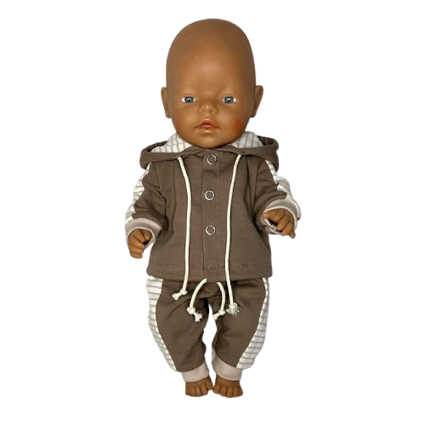 Sportief en comfortabele set poppenkleertjes, bestaande uit een capuchonvest en jogger.