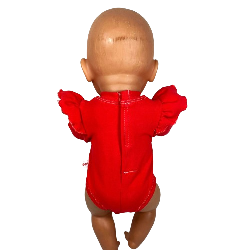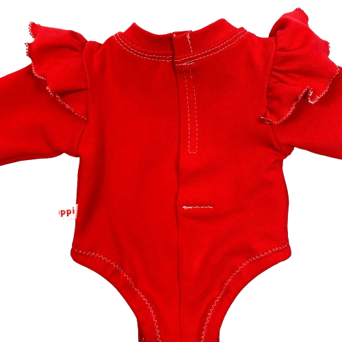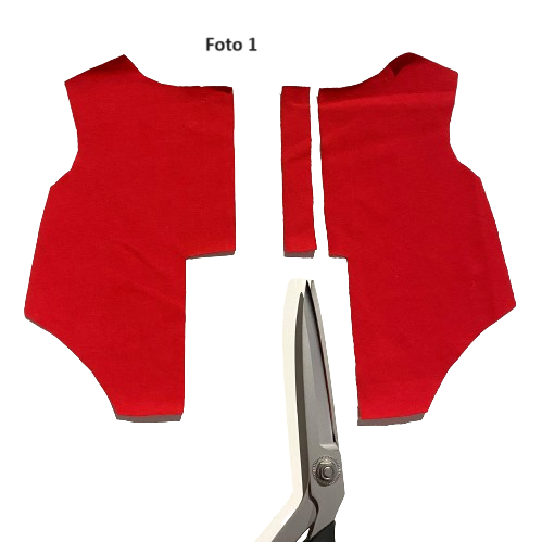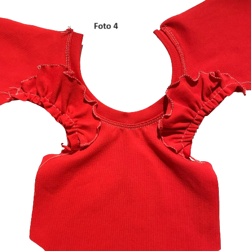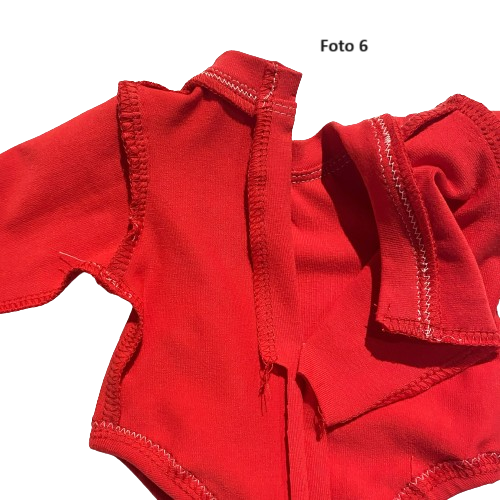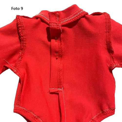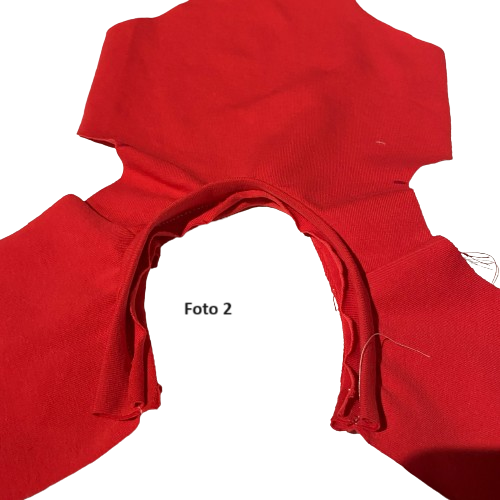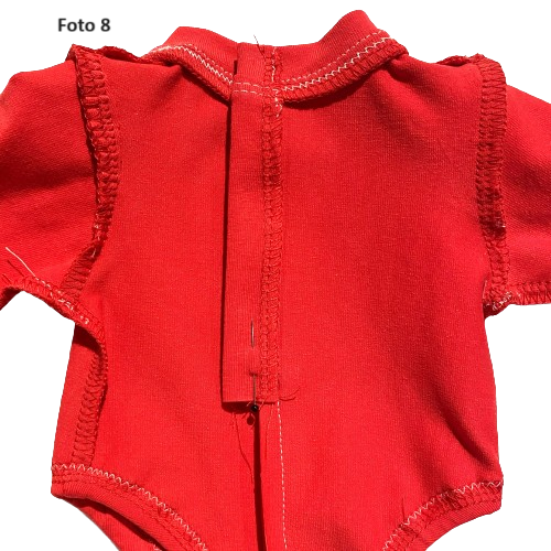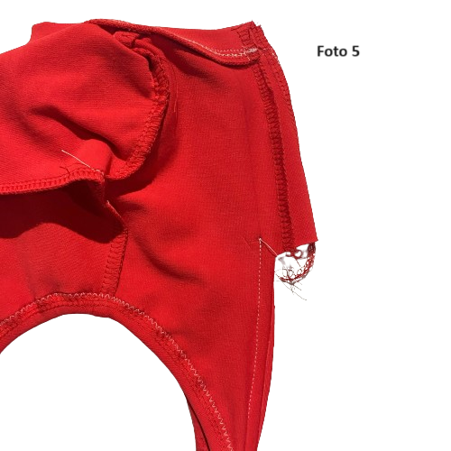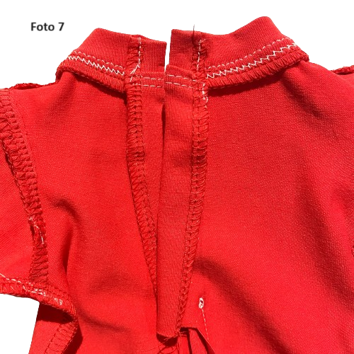 Ter verduidelijking staan hieronder nog enkele foto's van de achterkant van de rode romper, waarop de split duidelijk te zien is.